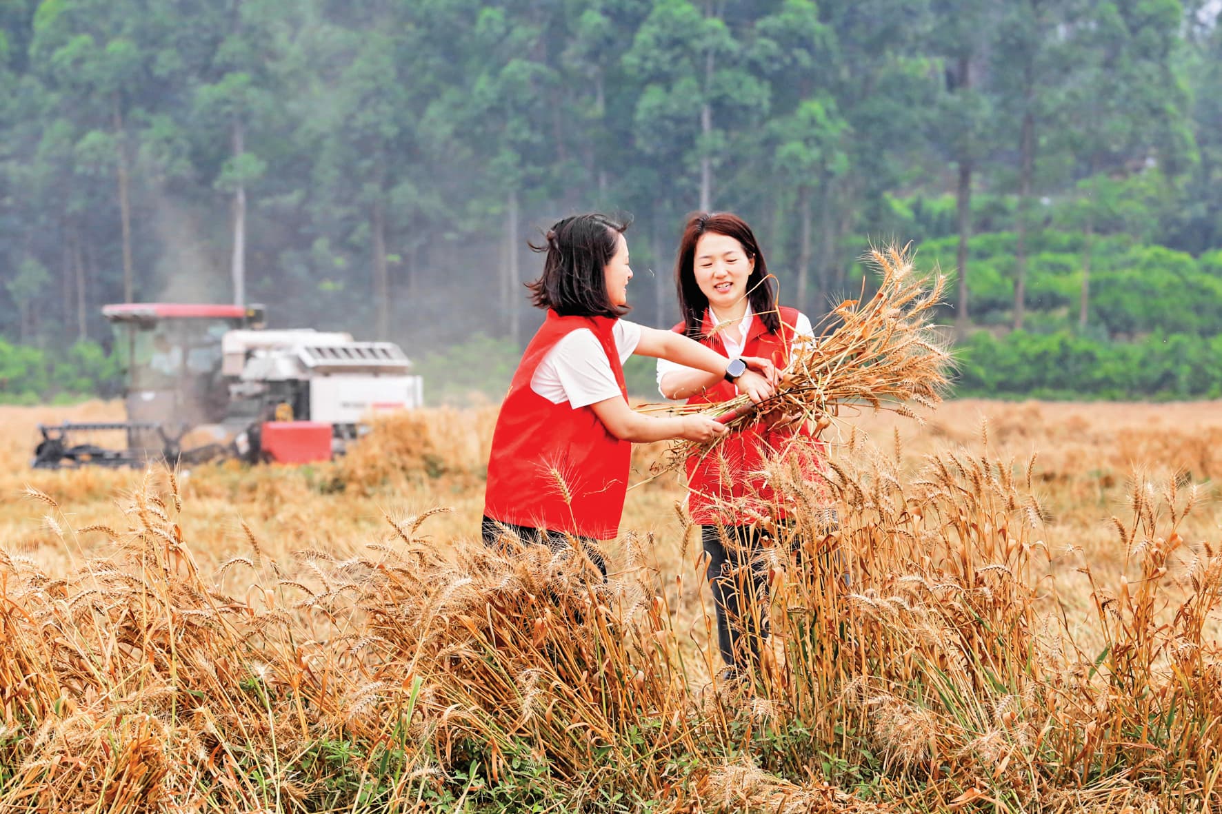 5月14日,在四川省樂山市水口鎮三星村,“志愿紅”助耕隊隊員在幫助農戶搶收、轉運小麥。新華社發(李華時 攝)