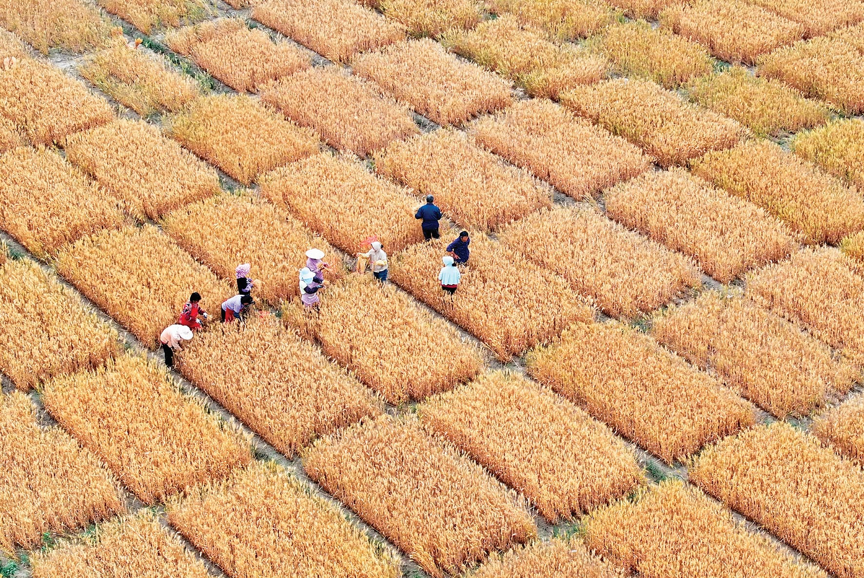 5月15日,江蘇里下河地區農科所(揚州市農科院)的農民在收獲小麥。新華社發(孟德龍 攝)