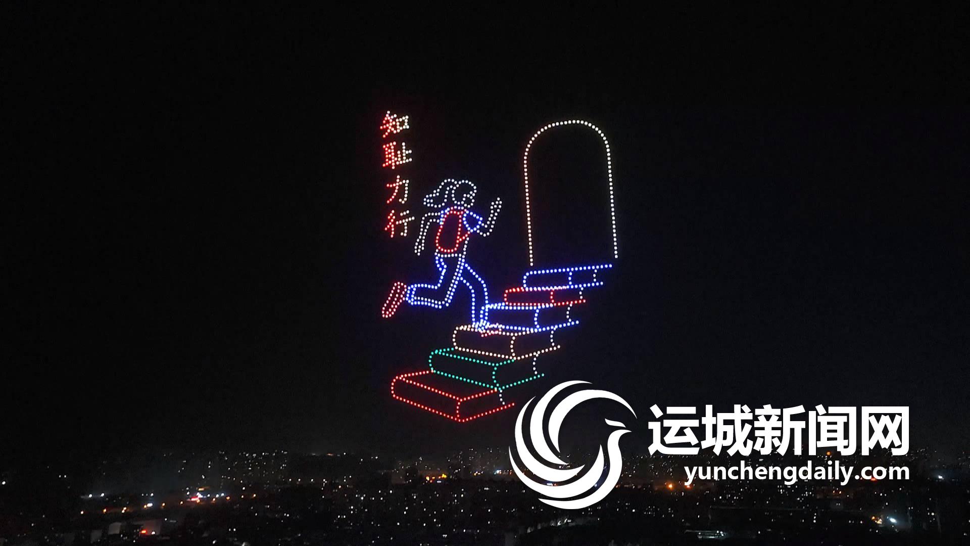 夜幕初垂,千架無人機騰空而起,在夜空次第變幻出鹽湖、條山等運城標志性元素,以及“唯美、篤學、崇德、尚智”等校訓字樣。四層色彩交疊輝映,光影流轉(zhuǎn)間將地域文化、校園精神與現(xiàn)代科技深度融合。“從無人機轟鳴升空的瞬間,就被眼前的壯觀景象震撼了。”該校教師楊帆難掩激動,“這些圖案不僅展現(xiàn)了科技魅力,更傳遞出濃厚的文化底蘊。”