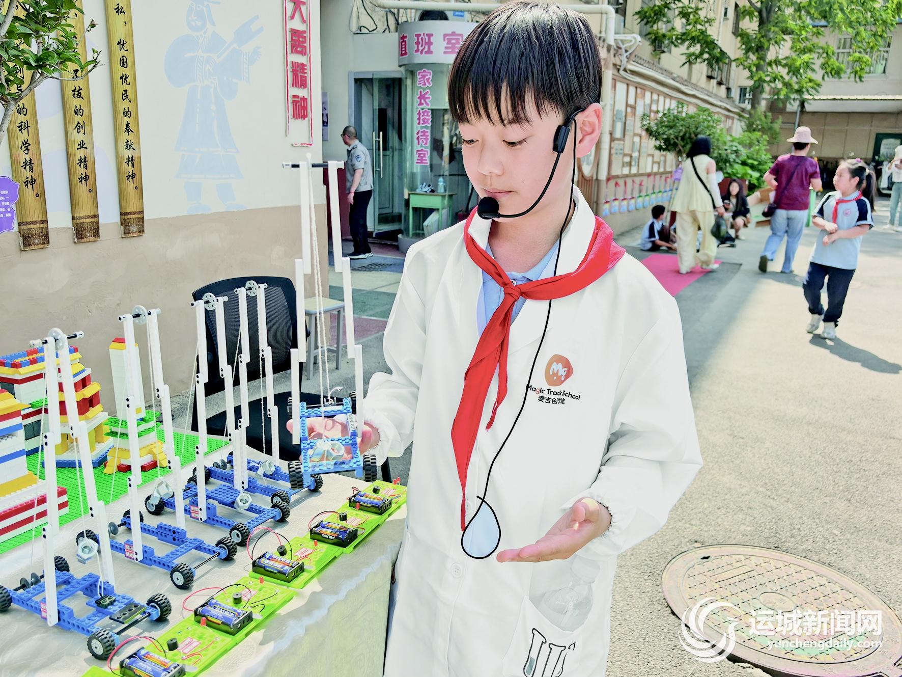 “拉高螺母,隨后松手,這樣重力勢能便轉化為動能,帶動小車前進。”5月21日,在鹽湖區魏風教育集團禹都學校舉辦的第三屆校園藝術節現場,六年級2班的楊晨宇向同學們介紹著自己制作的“重力小車”。與常見的玩具汽車不同,他的小車不用電池便能隨時隨地“跑”起來。