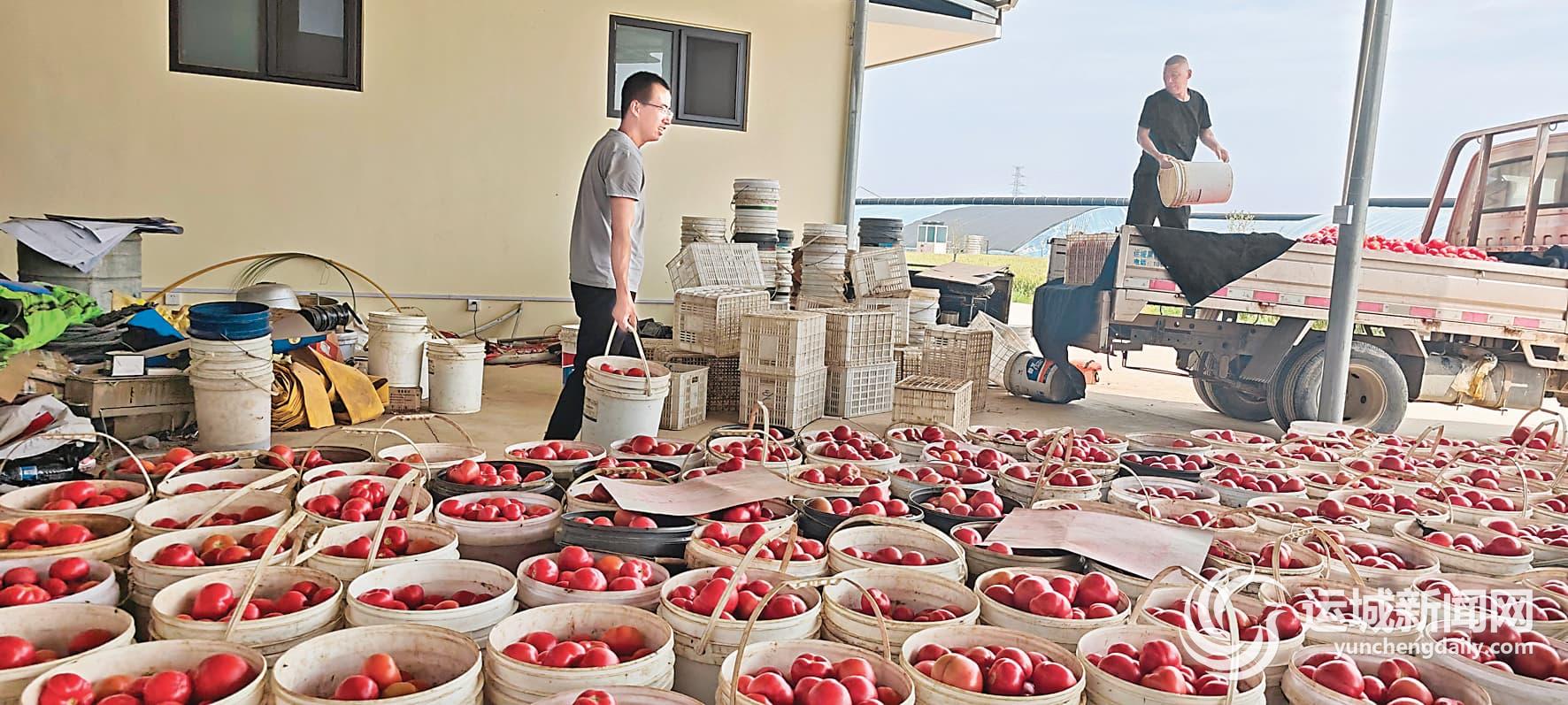 下段村蔬菜產業園安特萊斯西紅柿采摘期結束,客商入園收購普通品種西紅柿。記者 陳永年 攝