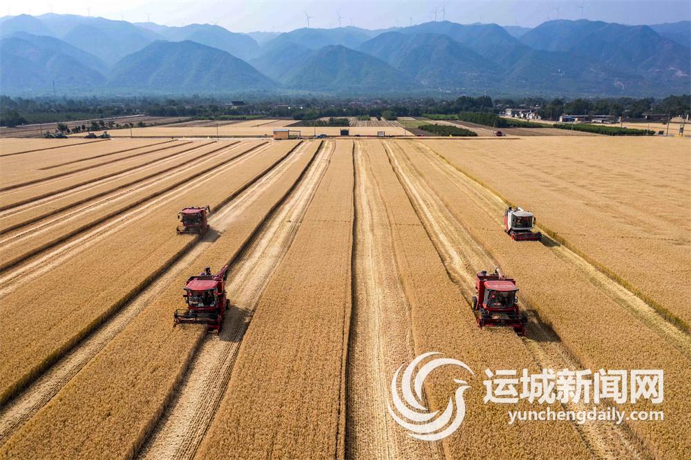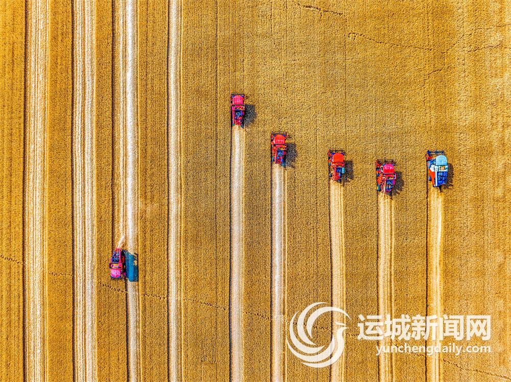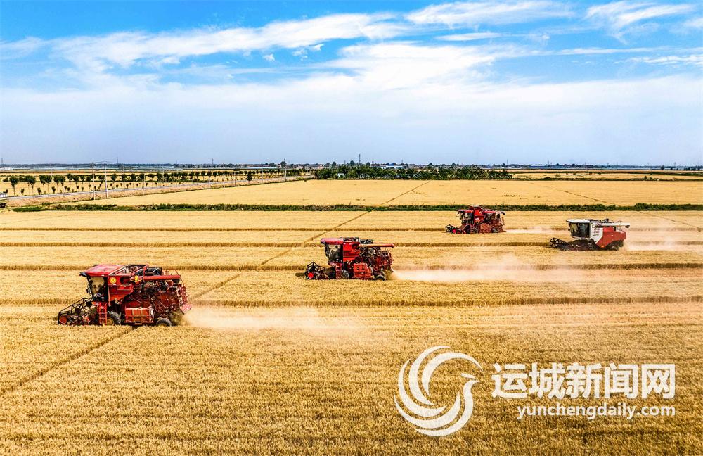 又是一年麥收季,河東大地廣袤的田野一片金黃,“豐”景如畫。