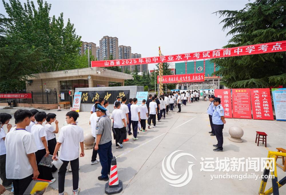 6月20日,芮城縣陌南中學考點外,考生有序排隊,依次通過安檢后進入考場。
