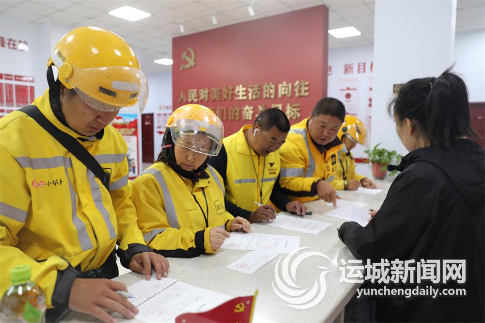 平陸縣在新業(yè)態(tài)、新就業(yè)群體中開展“雙報到雙服務(wù)”工作,發(fā)揮外賣員、快遞小哥走街串巷、貼近群眾的職業(yè)優(yōu)勢,參與志愿服務(wù),整合基層治理“微力量”。圖為外賣員在平陸縣東城社區(qū)報到認領(lǐng)“微服務(wù)”。