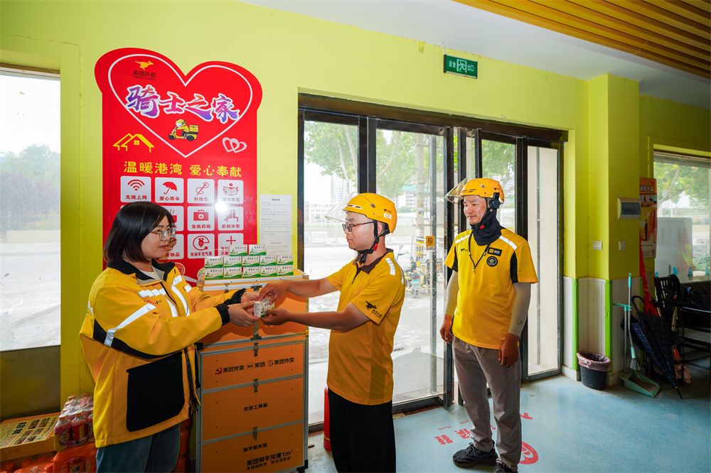 芮城縣以“黨建+”為破題之匙,不斷增強黨在新興領域的號召力、凝聚力、影響力。圖為近日美團外賣黨支部為美團騎手發放藿香正氣水。