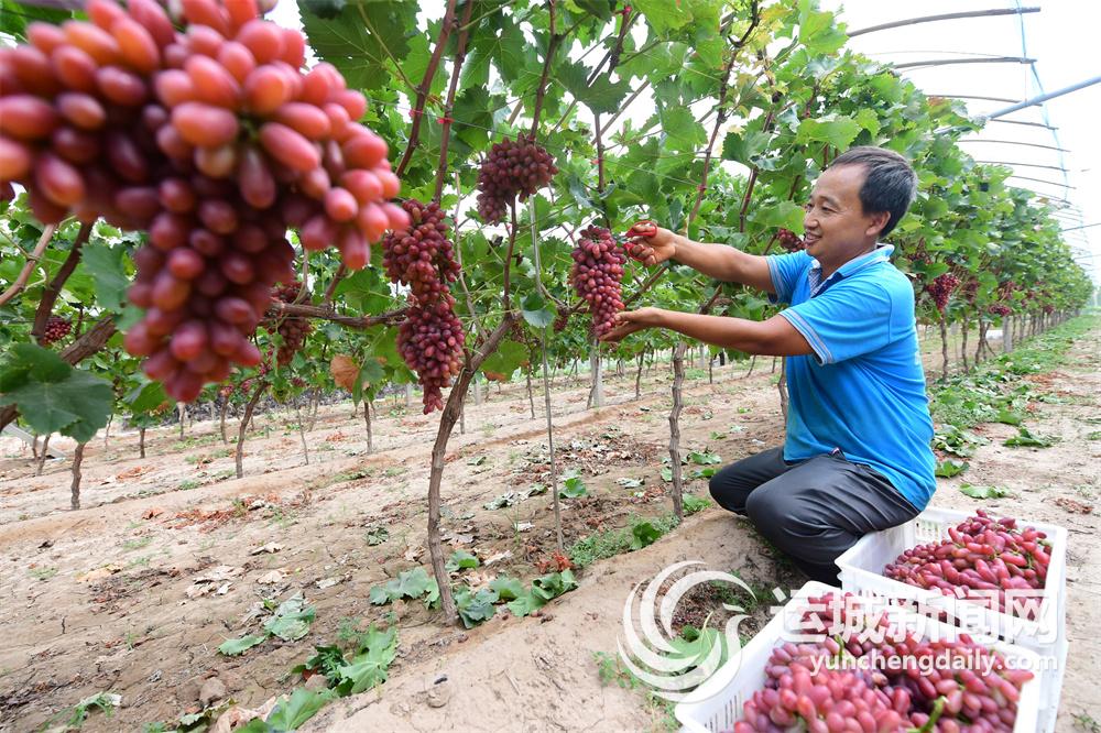 永濟市聚焦品牌農業強市打造,推進永濟葡萄、永濟香椿、永濟蘆筍、永濟黃河鯉魚、永濟黃河赤眼鱒獲得全國名特優新農產品認證。圖為農戶永濟市卿頭鎮永喜莊村克倫生葡萄種植基地采摘葡萄。