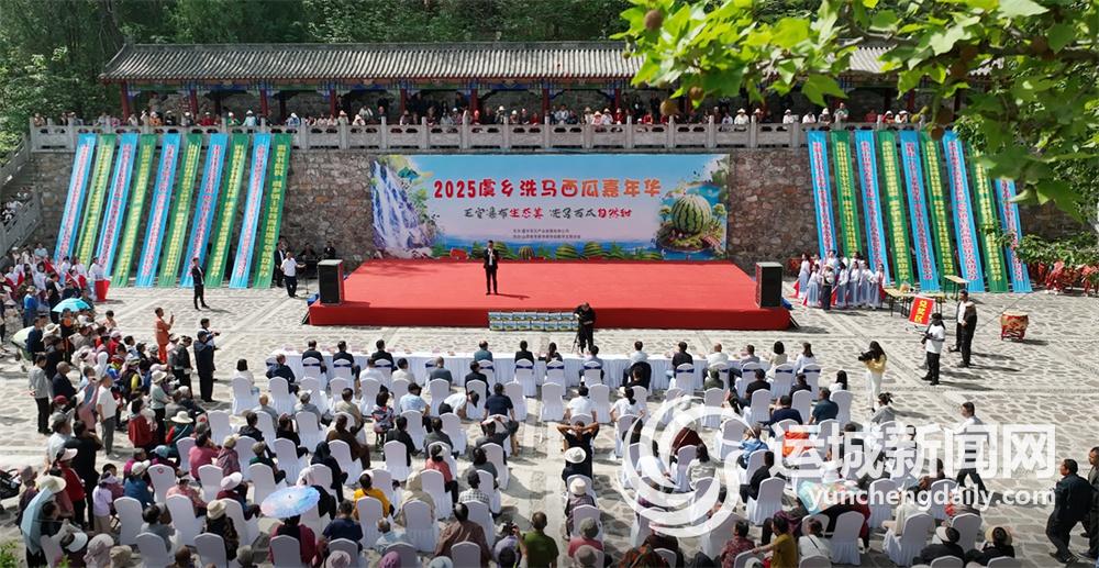 永濟市堅持黨建引領,推動農商文旅深度融合,助力鄉村全面振興。圖為永濟市虞鄉鎮“王官瀑布生態美 洗馬西瓜自然甜”洗馬西瓜采收季嘉年華活動現場。