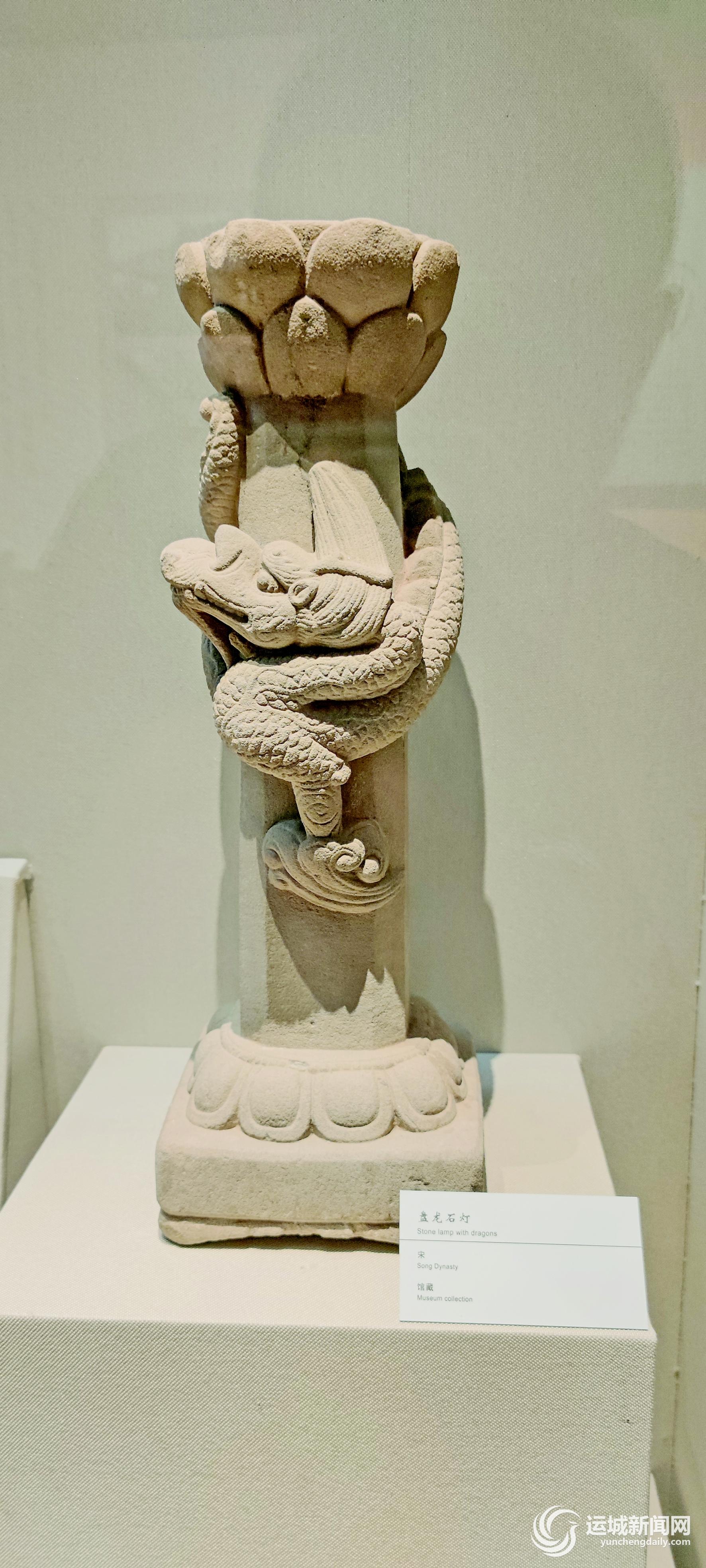 永濟博物館歷史文化展展出的宋代盤龍石燈 記者 劉亞 攝