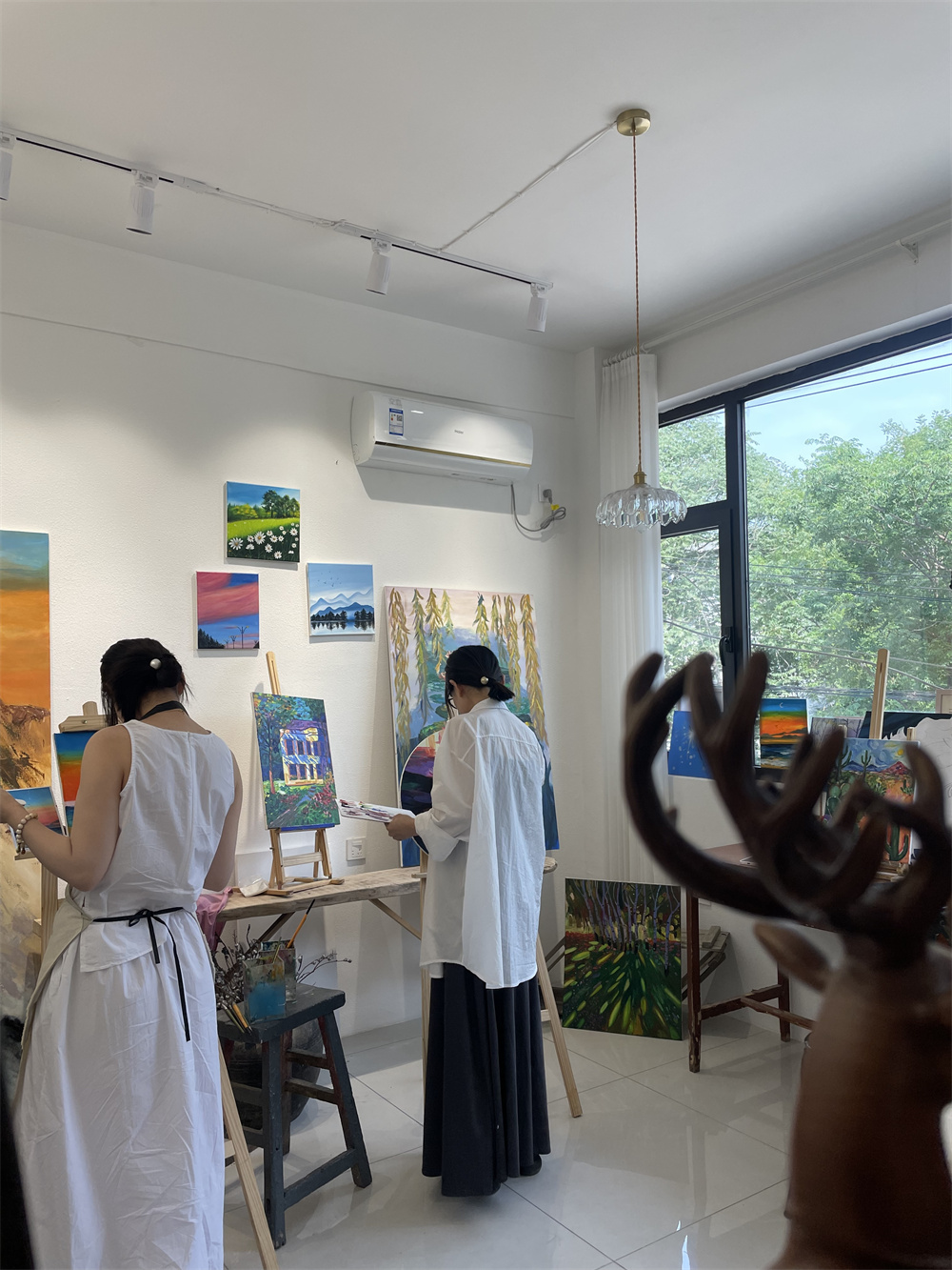 從創(chuàng)立之初到現(xiàn)在,“治愈”一直是她希望能給到走進(jìn)這間畫室的人的力量所在。畫室的裝修風(fēng)格就是她理念的直觀體現(xiàn)。不同于多數(shù)畫室濃烈的色彩碰撞,她堅(jiān)持用白色作為畫室的主色調(diào),再點(diǎn)綴一些柔和的顏色,讓大家走進(jìn)這里能放松下來。“畫室的價(jià)值不僅在于教授繪畫,更在于提供一個(gè)安全的情緒出口。”她說。