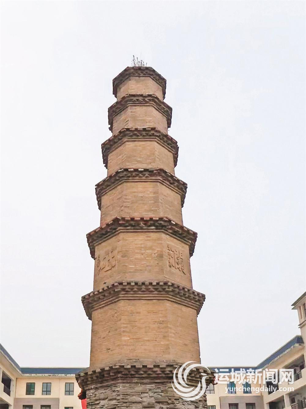 聞喜回瀾塔屹立于現今聞喜縣城西街示范小學校門之處,是一座八角九層密檐式磚塔,高度約達27米。