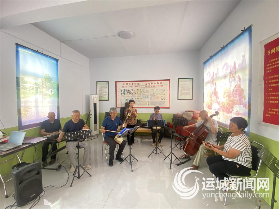 午后陽光灑滿黨群服務中心的多功能活動室,老年戲迷協會的18名成員在黨員文藝骨干的帶領下,正排練眉戶經典《一顆紅心》。這支由老年人組成的隊伍輻射萬榮、臨猗兩縣,樂器中西合璧,既有二胡、竹笛、鼓、揚琴等傳統樂器,又有鋼琴、大提琴、小提琴等西洋樂器,表演別開生面,分外精彩。