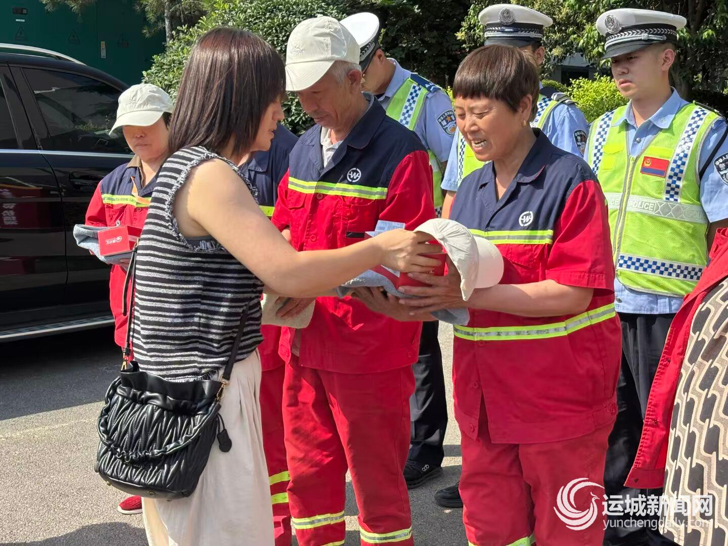 鹽湖區中城街道朝陽社區黨群服務中心門口增設了一個愛心飲水點,每天9時至18時為戶外勞動者免費提供綠豆水和熱茶水;鹽湖區東城街道槐東社區、姚孟街道華源豪庭社區等,為戶外勞動者送上裝有藿香正氣水、風油精、水杯、冰袖等物品的“清涼禮包”;運城華新液化天然氣有限公司為一線工作人員提供綠豆水,并提前備齊各類防暑藥品……