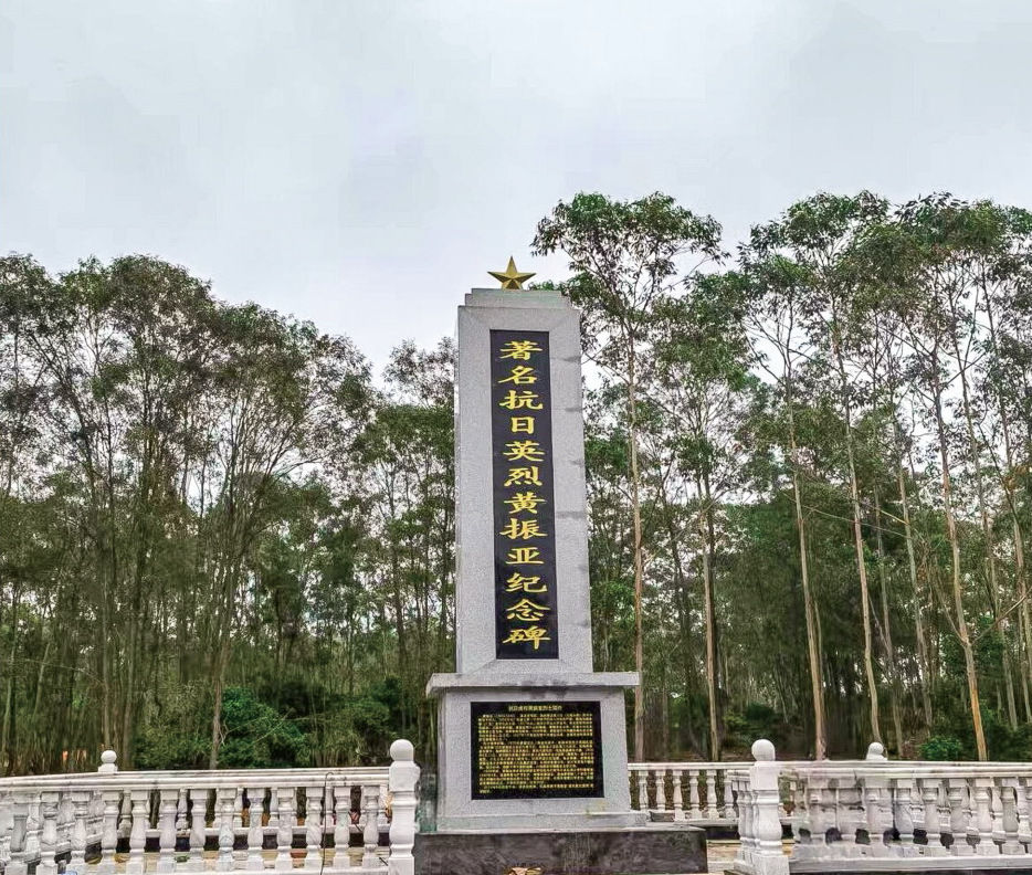 1940年4月初,35歲的黃振亞協助中共瓊崖特委書記馮白駒工作,赴儋縣組建第六大隊。他率領20多名干部、戰士和軍械工人途經儋縣東成抱舍墟時,與日軍相遇,在槍林彈雨中壯烈犧牲。