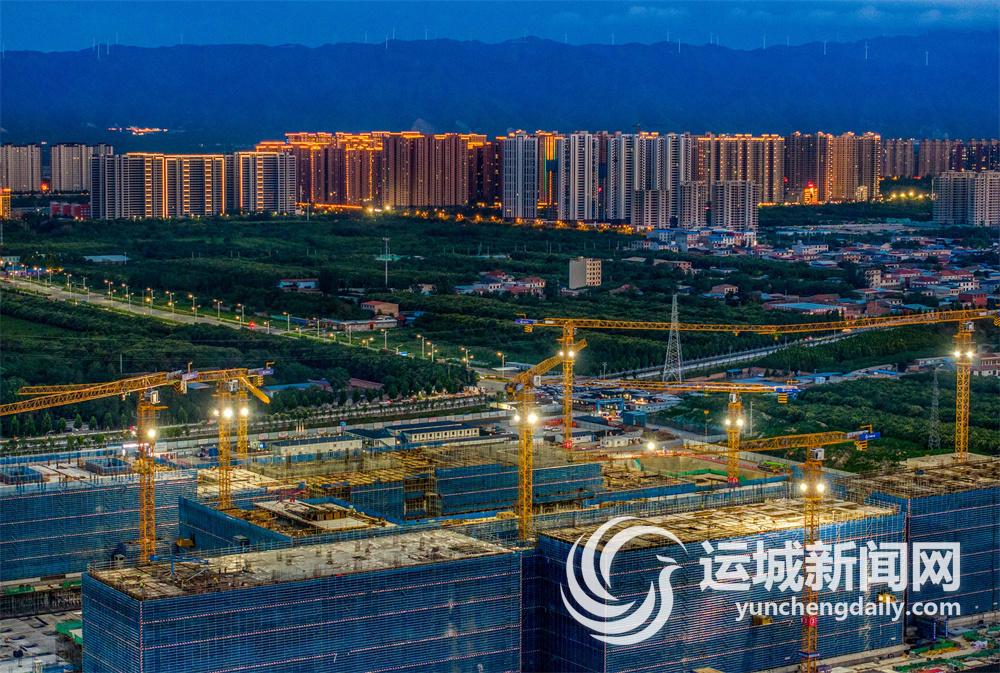 7月23日,運城市人民醫院建設項目現場,工人們夜間時段奮戰,趕工期,安全有序推進工程進度。