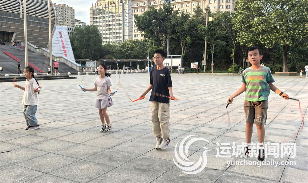 7月23日下午6時,在市體育館門口的廣場上,幾名小朋友正跟著節(jié)奏練習跳繩。“大臂貼緊,手腕發(fā)力……”伴著教練的口令,孩子們身體輕快,動作優(yōu)美,以運動開啟快樂假期。