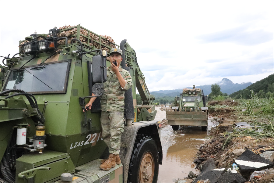 7月29日,陸軍第82集團軍某旅官兵抵達河北承德灤平縣馬營子滿族鄉南臺子西溝村搶修中斷道路。