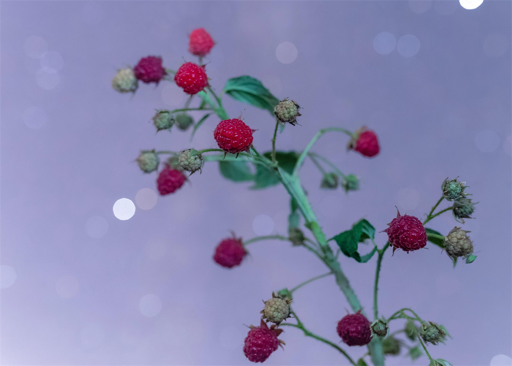 近日在黑龍江省佳木斯市郊區拍攝的星空下的樹莓。 新華社發(陳志國 攝)