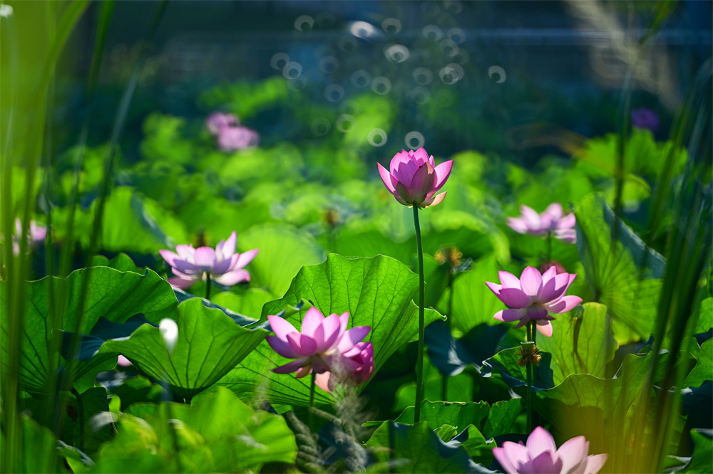 近日在江蘇省淮安市金湖縣起點公園拍攝的荷花。農歷六月,也稱“荷月”。古人以荷消暑,以荷入詩,以賞荷尋得心靈的寧靜。新華社發(梁德斌 攝)