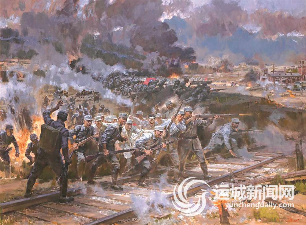 抗戰題材經典美術作品長廊 百團大戰——正太鐵路破擊戰(油畫)