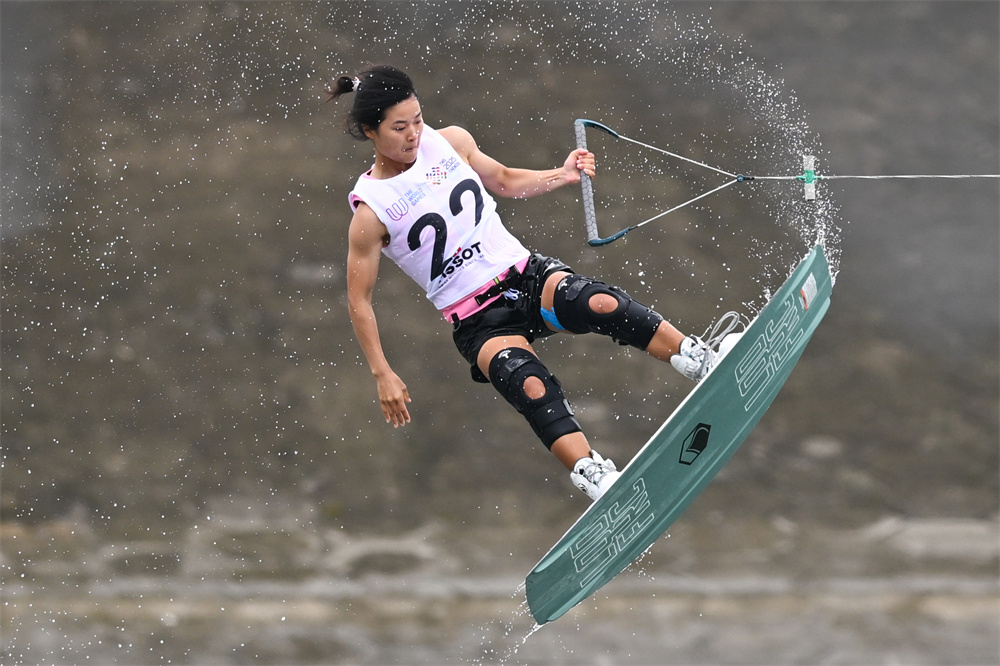 8月10日,冠軍中國選手徐露在比賽中。當日,在2025年成都世運會女子尾波滑水自由式決賽中,中國選手徐露獲得冠軍。