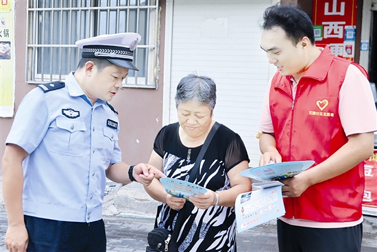 8月5日,義馬市千秋路街道花園社區聯合義馬市公安局交警大隊,深入小區開展交通安全宣傳教育,提升群眾的交通安全意識,營造共同關注、參與交通安全的良好氛圍。 史宗陽 攝