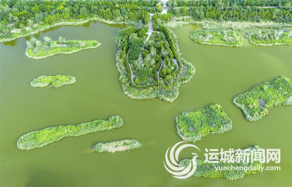 8月14日,鹽湖生態(tài)濕地公園碧水環(huán)繞,綠樹成蔭,星羅棋布,勾勒出一幅生機(jī)盎然的美麗畫卷。