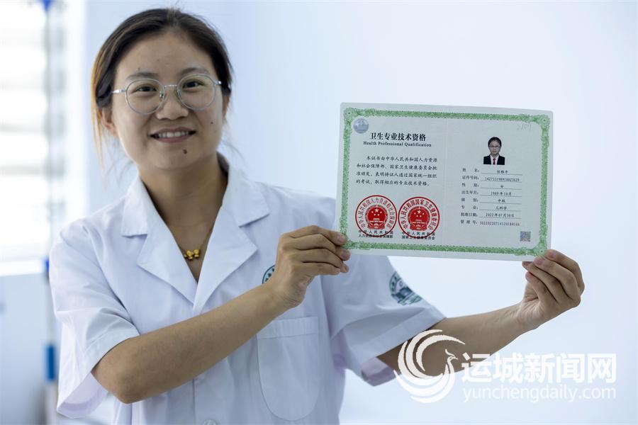 6月19日,垣曲縣新城鎮上王村衛生室大學生村醫任雅平展示她的中級職稱證書。