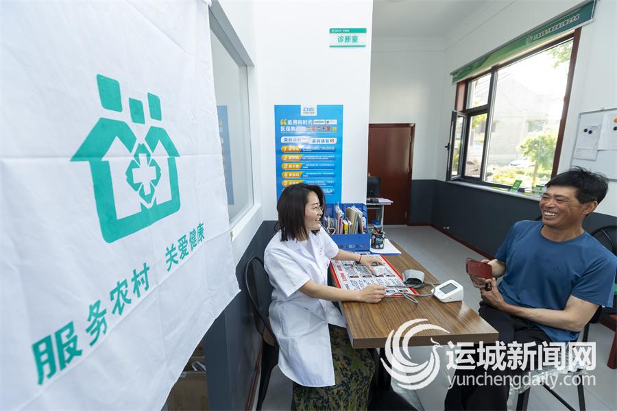 6月4日,臨猗縣耽子鎮陶唐村衛生室大學生村醫屈麗麗為村民把脈。