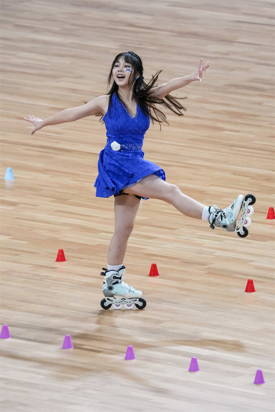 當(dāng)日,在成都輪滑運動中心舉行的2025年成都世運會自由式輪滑女子花式繞樁決賽中,中國選手朱思怡、劉佳欣包攬冠亞軍。