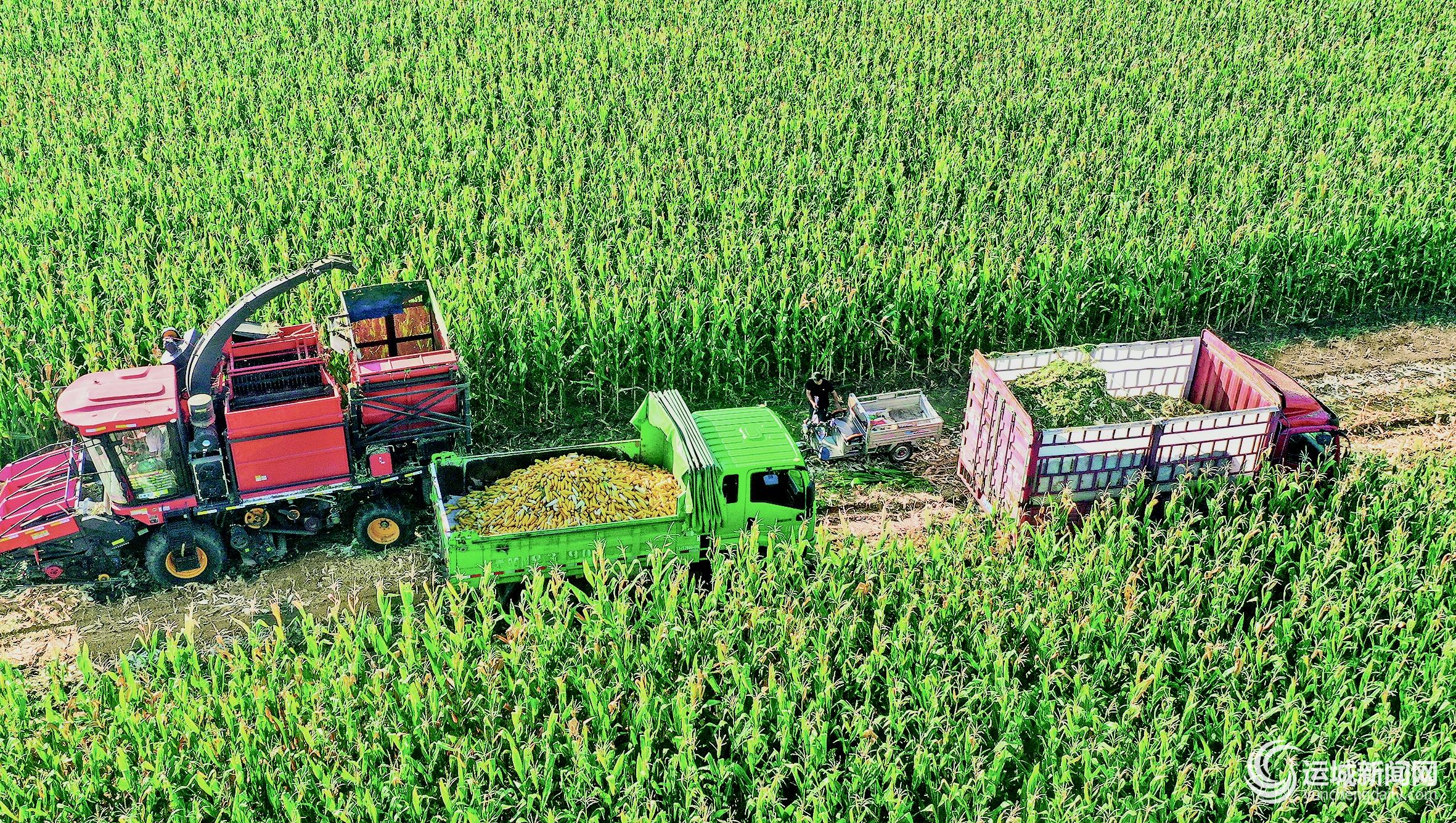 8月20日,夏縣瑤峰鎮(zhèn)大洋村玉米種植基地,村民駕駛農(nóng)機在收獲早熟玉米。