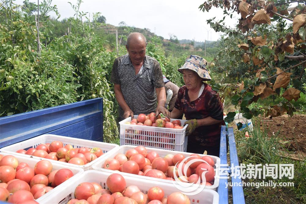 8月25日,萬榮縣漢薛鎮南文村農戶在大田里采摘西紅柿。