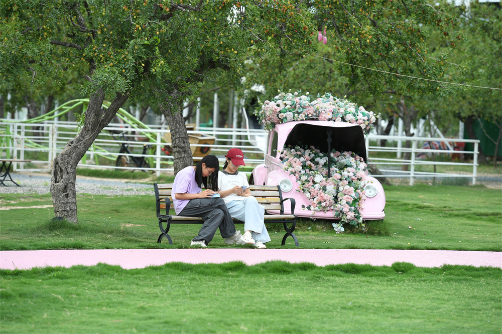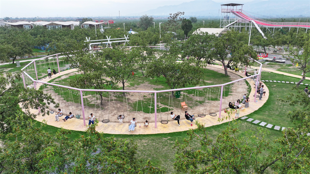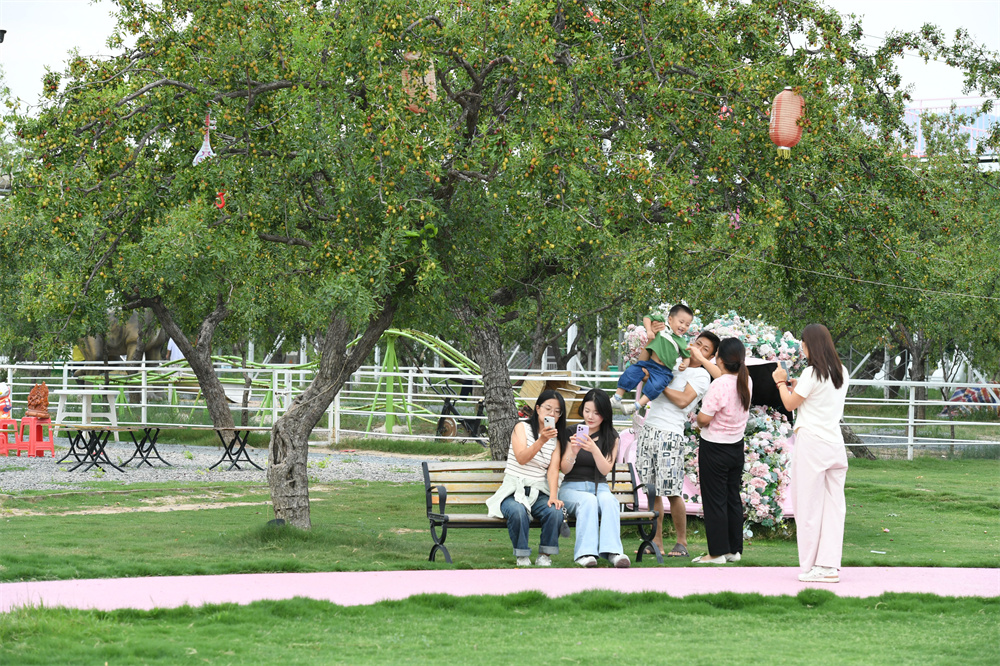 8月29日,游人在稷山縣“守望千年·只為棗你”鄉村振興示范園區板棗童話樂園游玩。
