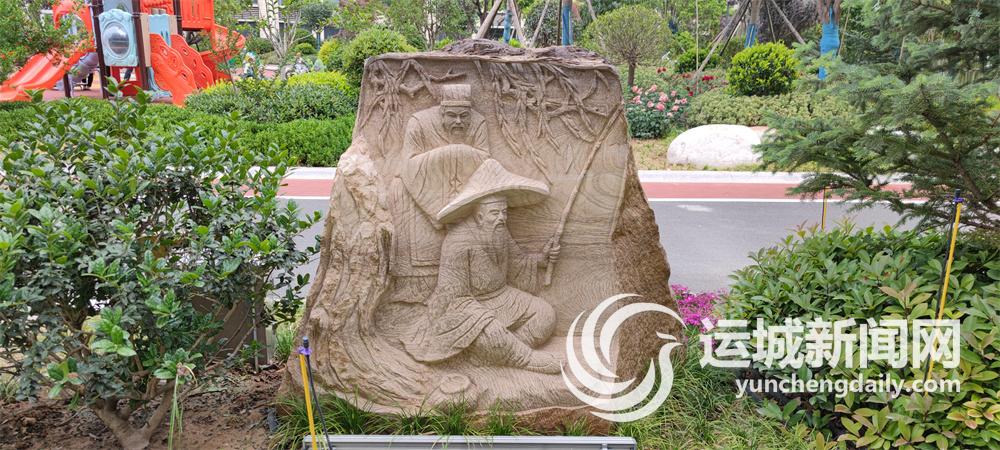 運城市鼎鑫華府小區“太公垂釣”石雕 記者 劉亞 攝