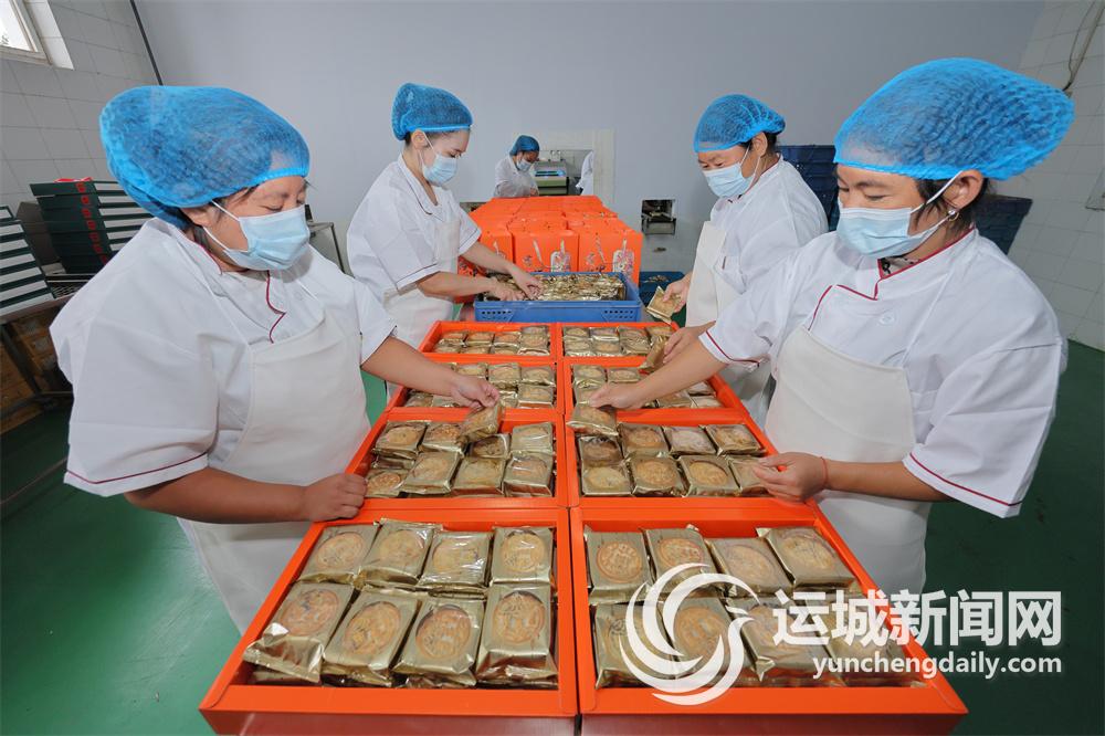 9月18日,運城唐谷街麥可馨食品有限公司工人將生產的月餅打包,準備發往市場。
