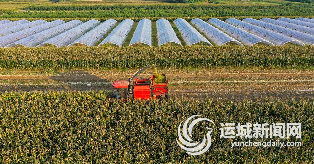 近日,夏縣廟前鎮上埝底村田間,村民駕駛農機收獲玉米。 特約攝影 張秀峰