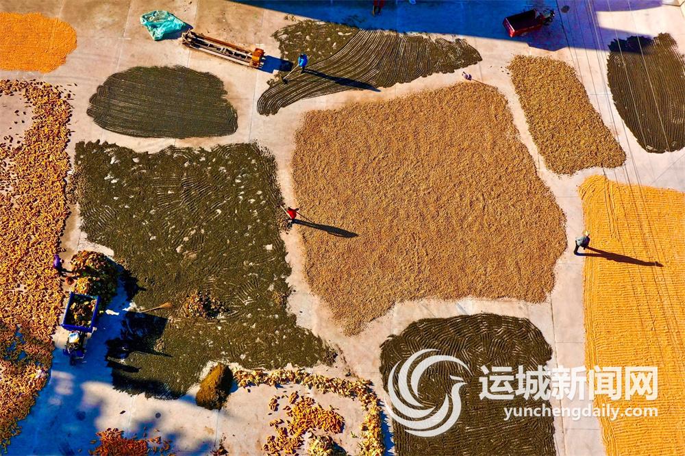 9月25日,平陸縣部官鎮東祁村村民趁著天氣晴好,在曬場、院落旁晾曬玉米、油葵等,空氣里到處彌漫著豐收的味道。 特約攝影 郝健
