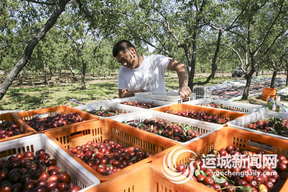 9月25日,稷山縣稷峰鎮姚村、陶梁村的棗園里一派繁忙景象,村民利用晴好天氣緊鑼密鼓地打棗,將一筐筐紅棗拉回家晾曬。 特約攝影 史云平