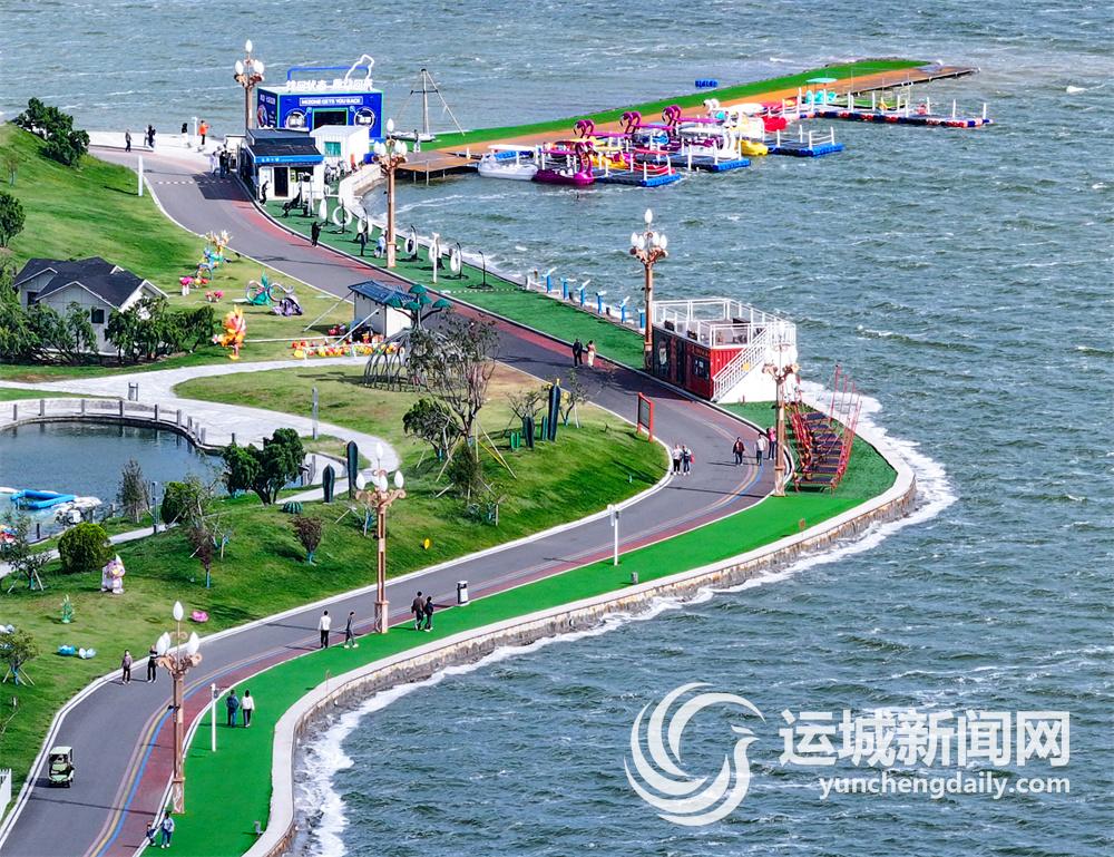 假期里,游客漫步于運(yùn)城鹽湖景區(qū)岸畔,盡享生態(tài)治理帶來(lái)的詩(shī)意美景。