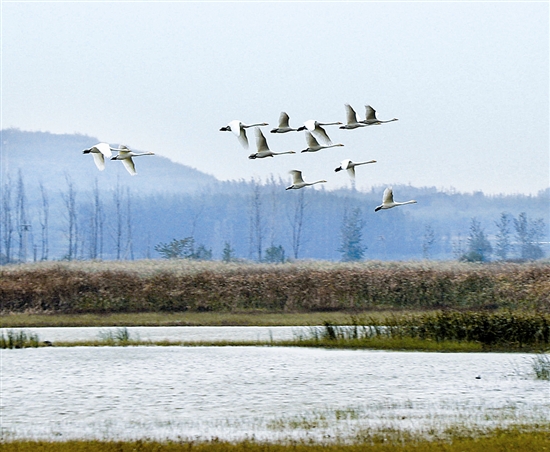 近年來,隨著我市黃河流域生態(tài)保護(hù)治理深入推進(jìn),當(dāng)?shù)厣鷳B(tài)環(huán)境持續(xù)優(yōu)化,已成為白天鵝越冬的重要棲息地。碧水藍(lán)天與白天鵝構(gòu)成的生態(tài)畫卷,是我市生態(tài)文明建設(shè)成效的生動體現(xiàn)。