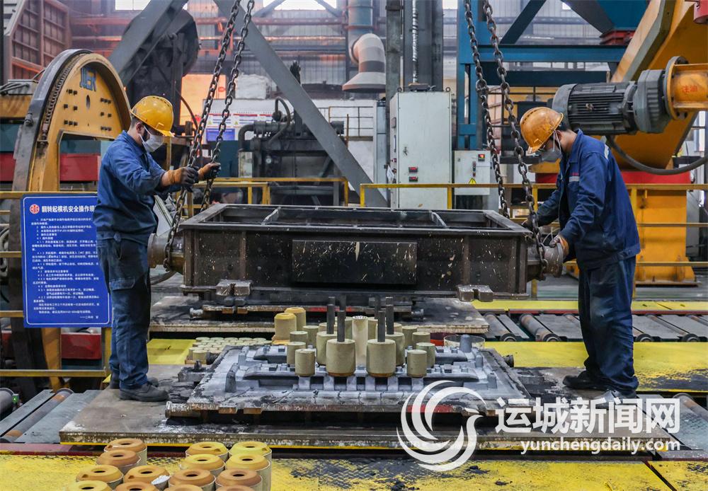 10月25日,山西中設華晉鑄造有限公司112車間內,工人們正在加緊生產訂單產品。