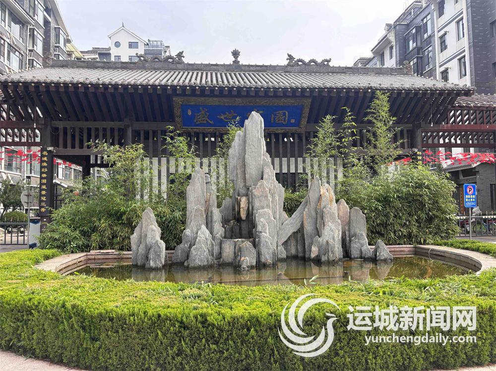 來到盛世家園小區西門,一副古香古色的楹聯首先映入眼簾:翰墨生花古絳人文獨一家 名城煥彩華園風景冠三晉。綠竹掩映,冬青環抱,一池清水映著錯落的假山與景觀石,定時噴涌的噴泉更添幾分大氣與雅致。