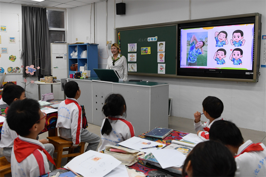 在北京市海淀區(qū)第四實(shí)驗(yàn)小學(xué)《歡樂的游樂園》主題美術(shù)公開課上,老師展示利用AI技術(shù)生成的學(xué)生漫畫形象。