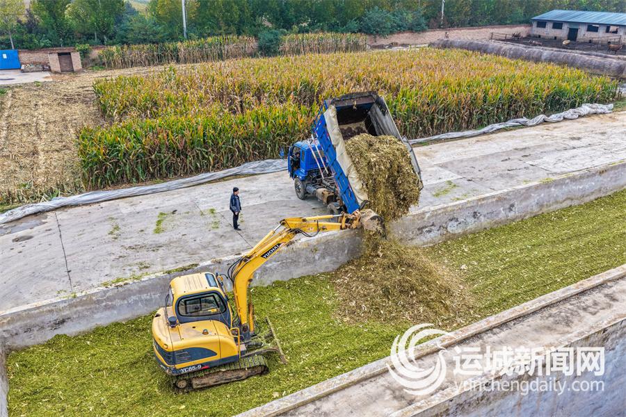 類似的場景同樣出現在新絳縣窯兒村會琴養殖場。青貯池里鏟車來回穿梭壓實秸稈,機器的轟鳴聲中,工作人員孫高軍算了一筆賬:“我們單個青貯池能存700多噸秸稈,場里有100多頭牛,這3座池子的儲料量完全能滿足一年的飼料需求。”他提到,前段時間受持續降雨影響,土壤濕度過大導致農機無法進地收儲,昨天才正式啟動秸稈回收,目前每天能收七八十車,每車約1噸,收儲進度正穩步推進。