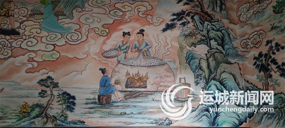 古人繅絲工藝中的煮繭工序(夏縣西陰村寺廟壁畫) 記者 劉亞 攝