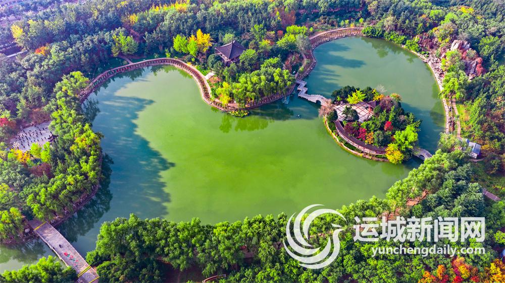 11月3日,永濟市柳園內,湖水碧波蕩漾,岸邊林木疊翠,點綴著斑斕秋色,亭臺、石橋錯落分布,勾勒出一幅濃墨重彩、詩意流淌的生態畫卷。 特約攝影 程永仁