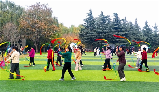 11月11日,市民在虢國公園鍛煉。入冬以來,天氣逐漸變冷,但市民運動健身的熱情絲毫不減,在三門峽市各公園和廣場,隨處可見人們健身運動的快樂身影。尚棟 攝