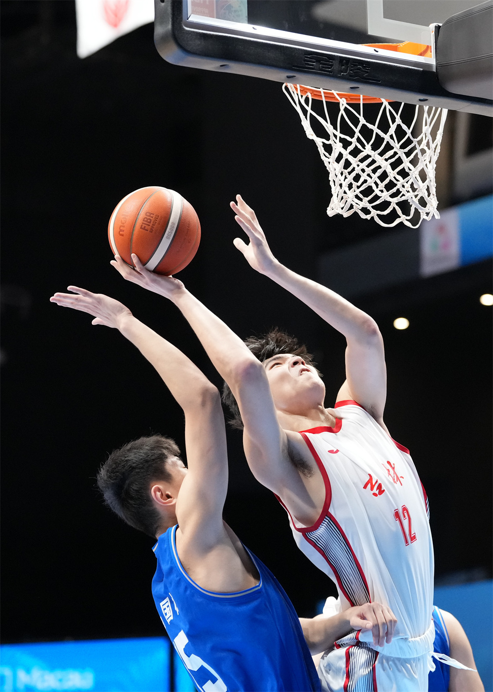 11月16日,吉林隊球員李雨軒(右)突破山東隊球員馬國棟的防守后投籃。當日,在澳門舉行的第十五屆全國運動會籃球男子18歲以下組1/4決賽中,山東隊102比64戰(zhàn)勝吉林隊,晉級半決賽。