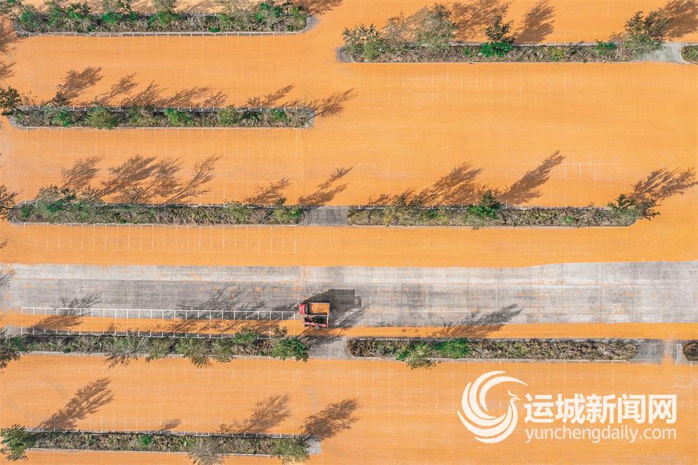 秋糧豐收季,鹽湖區一暫時閑置的停車場化身糧食曬場,方便當地農戶搶時晾曬秋糧,金黃的玉米鋪滿“曬場”,繪就出最美的“豐”景。
