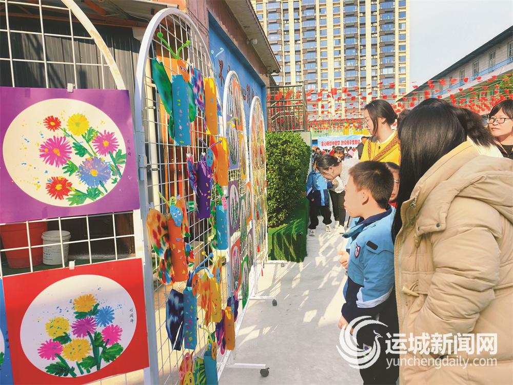 演出結束后,大家在藝術長廊參觀“綻放的色彩”靜態(tài)藝術作品展。百余件顏料畫、水彩畫和手工作品整齊陳列,這些作品或許線條不夠流暢、色彩搭配不夠協(xié)調,卻充滿了童真與想象力。