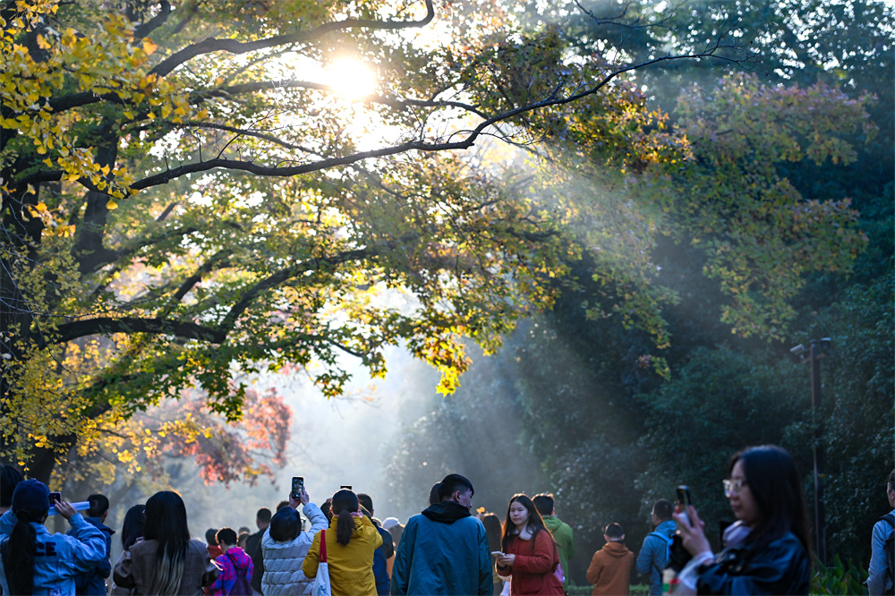 11月16日,游人在江蘇南京明孝陵景區賞景游玩。